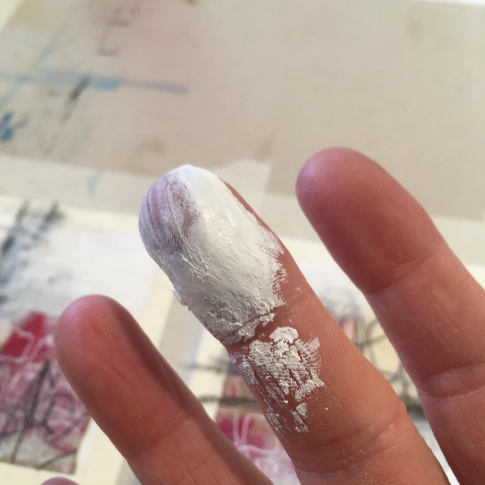 Andreas Müllcollagen, als das noch nicht Malen war, und ein schmutziger Finger: